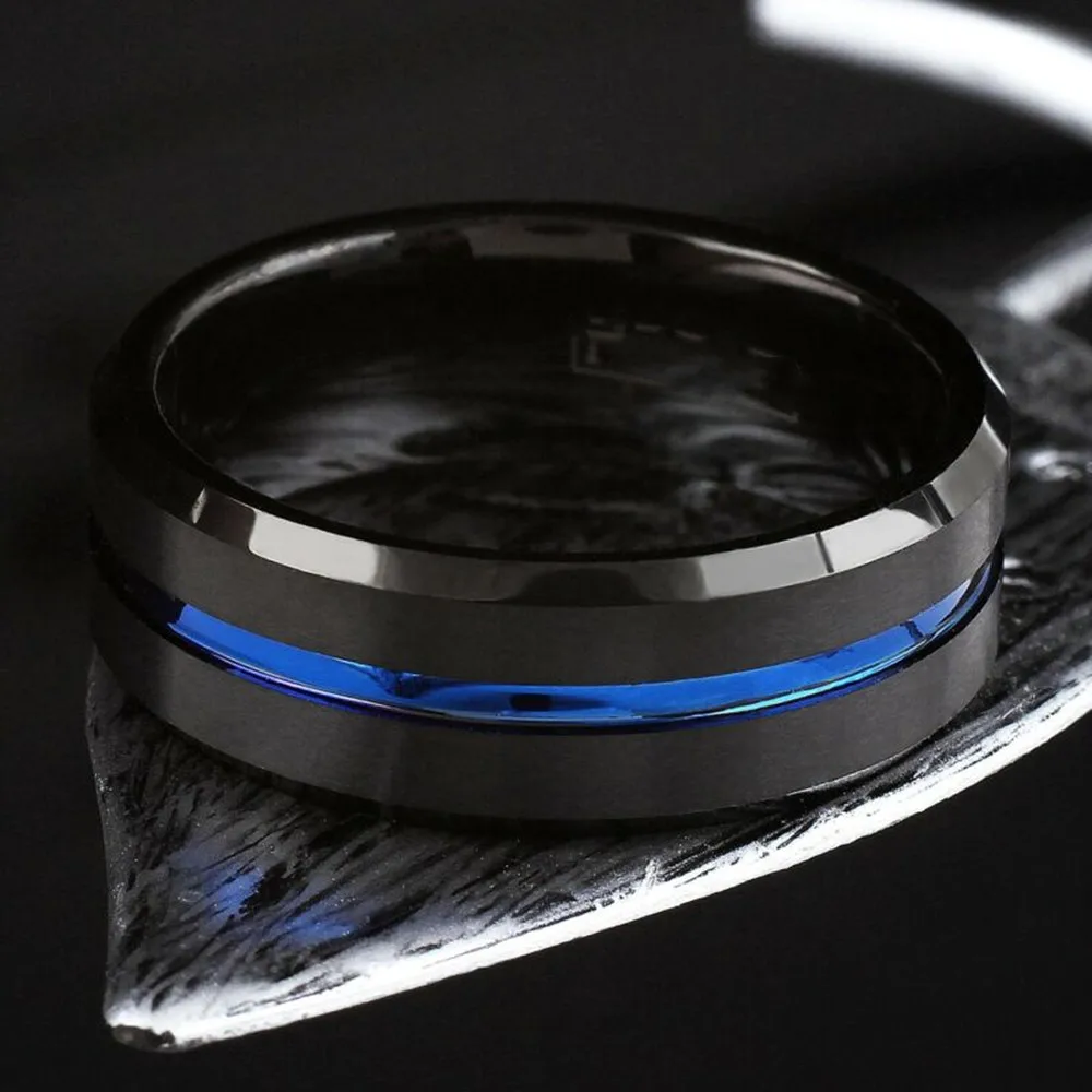 Новое модное мужское кольцо из нержавеющей стали 8 мм, розовое золото, CZ, тонкое розовое золото, леска, желоб, черное, матовый, мужское кольцо, обручальное кольцо, ювелирное изделие