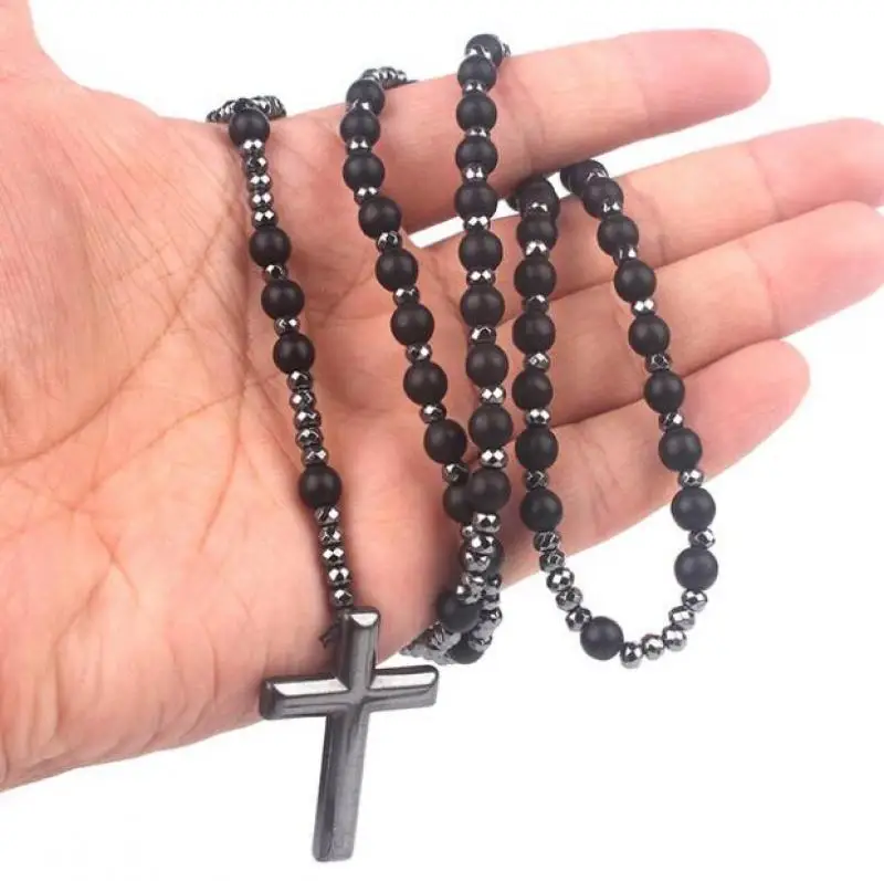 Новое ожерелье из натурального камня, христианские четки, мужская и женская подвеска в виде креста