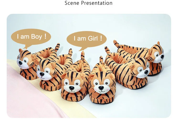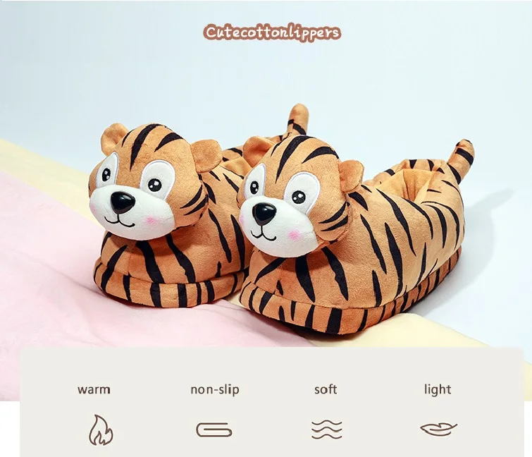 Тапочки для девочек с милыми животными и тигром, зимние тапочки для спальни, пушистые сланцы, Женская забавная плюшевая обувь для женщин, домашние тапочки