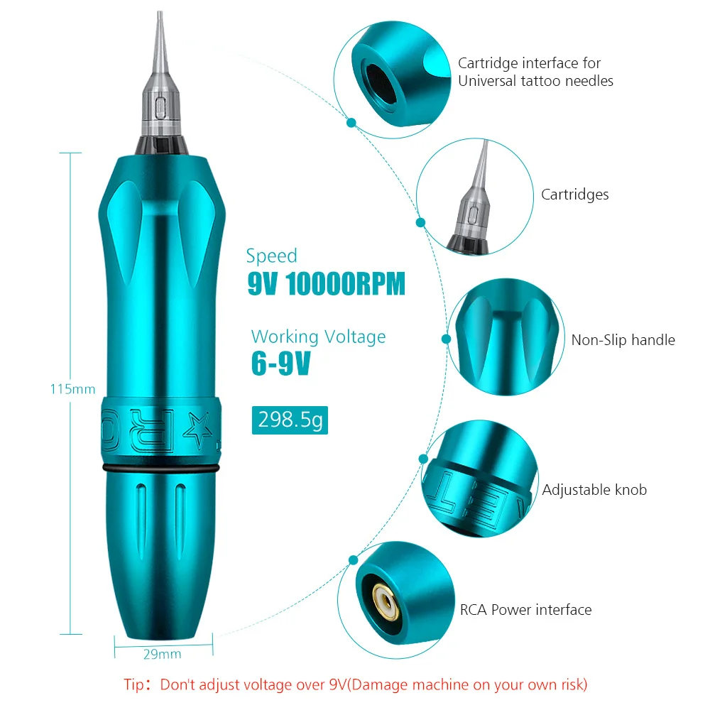 Бренд: ThunderlordТип: тату-машинкаМатериал корпуса: алюминийЦвет ручки: черный, синий, золотойСкорость: Макс. 10000 об/минВход: макс. 9 вХод поршня: 3,5 ммИгла: Универсальная игла для картриджаПодключение: кабель RCAFuntion: как для вкладышей и шейдеровПримечание:1. Наша машина поддерживает индивидуальный логотип.2. Допускается погрешность 3% при ручном измерении. Спасибо за понимание