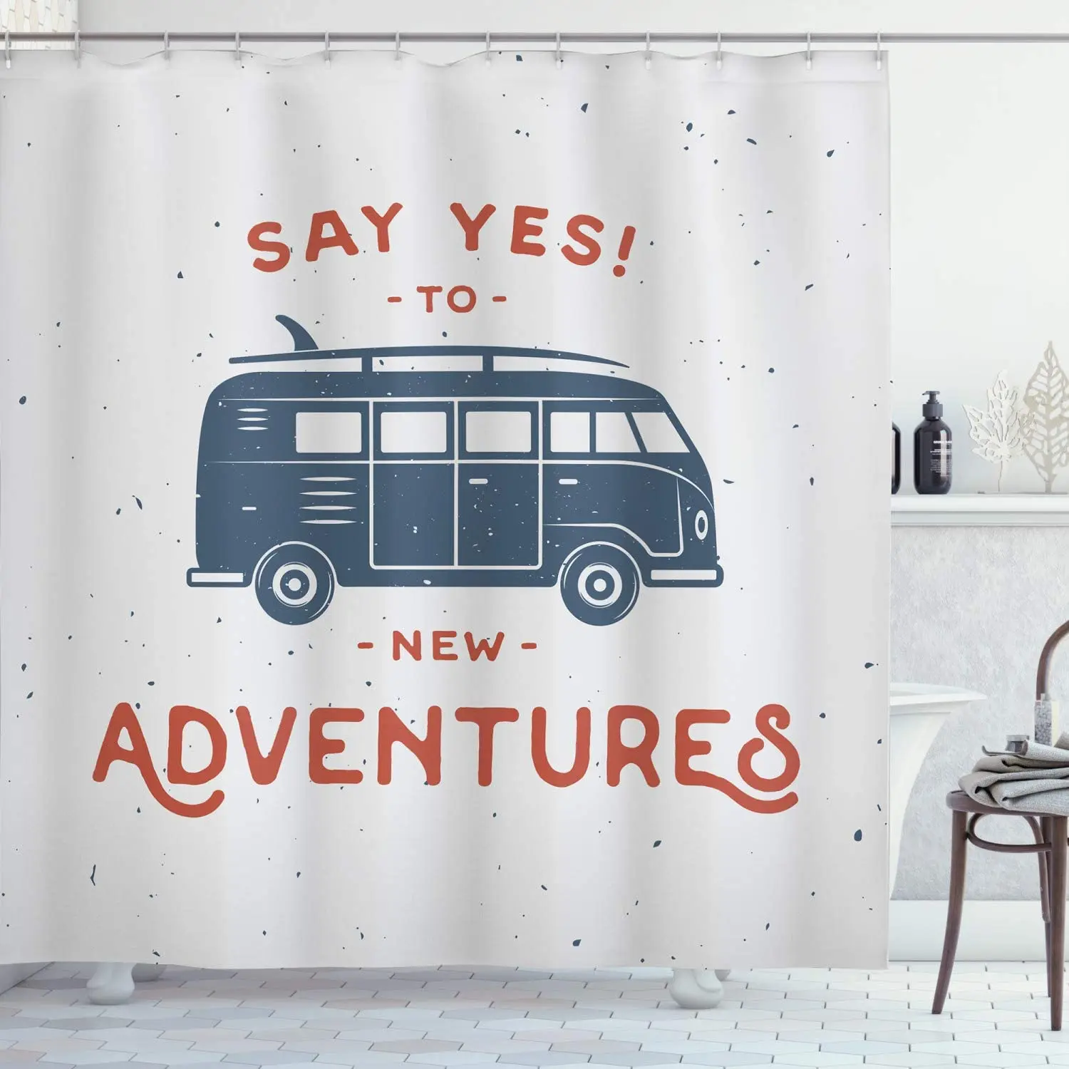 Занавеска для душа с изображением пальмы, побережья, автобуса, моря...