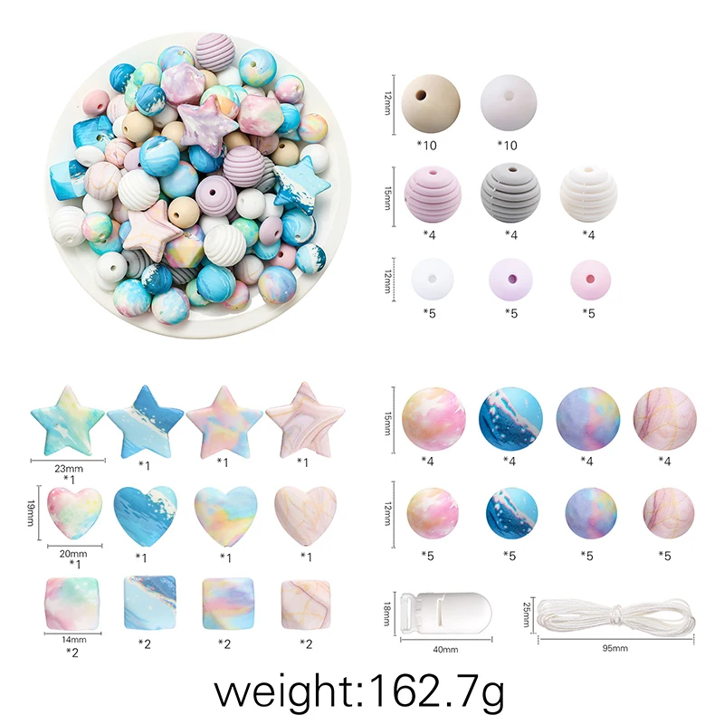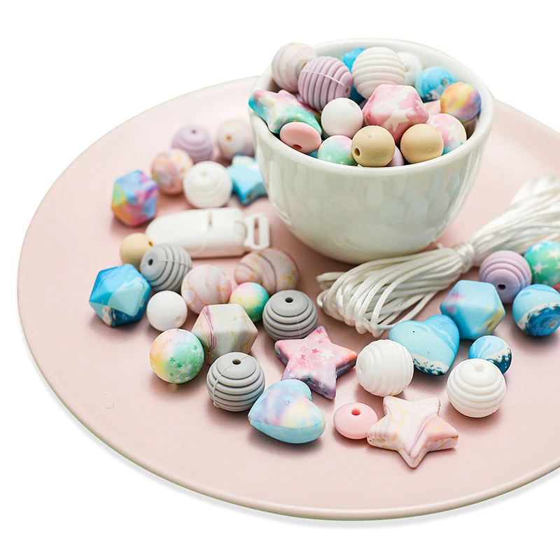 1 Набор бусин для прорезывания зубов из пищевого силикона круглые бусины с принтом в форме планеты Детская жевательная Для Прорезывания Зубов Бусины Силиконовые Прорезыватели Для DIY