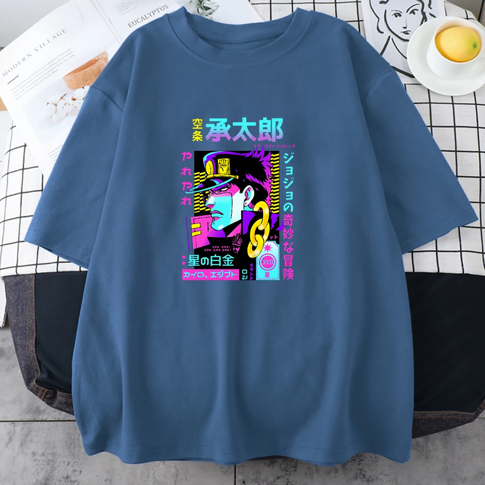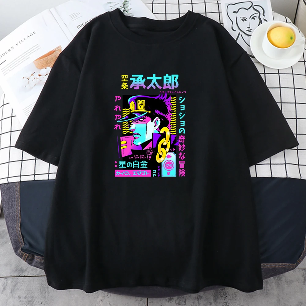 Футболка женская оверсайз с принтом манги, тенниска с коротким рукавом и круглым вырезом, уличная одежда Джоджо невероятные приключения, лето