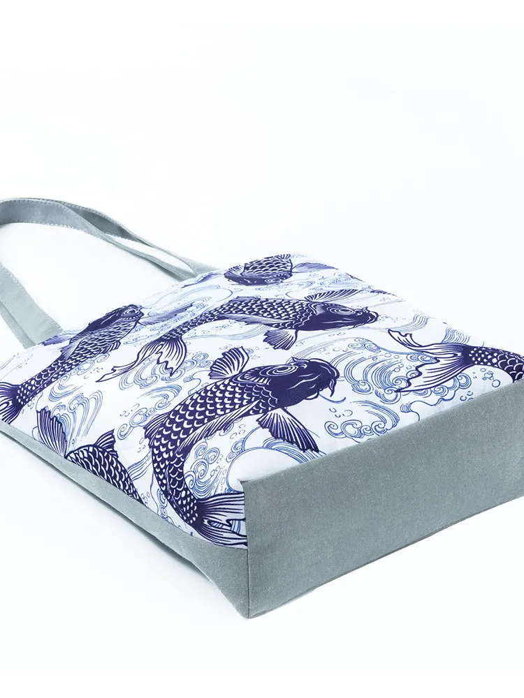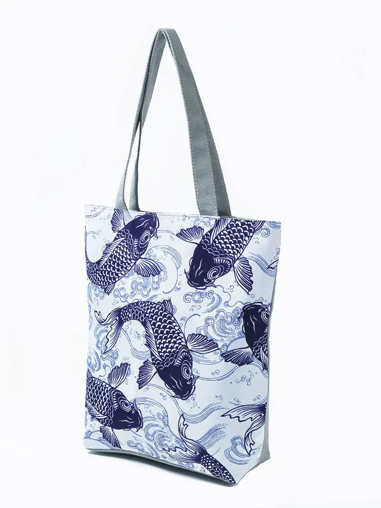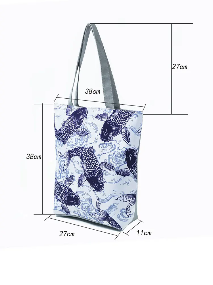 Китайские сумки с принтом карпа, Женская вместительная сумка для покупок, экологически чистые многоразовые сумки на плечо, сумка-тоут в виде рыбы, Прямая поставка