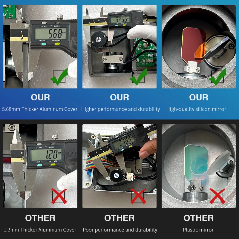 Мы делаем головку сканера с высоким качеством алюминиевых соединений толщиной стенки до 5,68 мм, нижняя стенка сканера составляет почти до 10 мм.