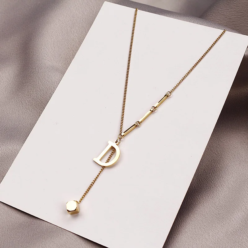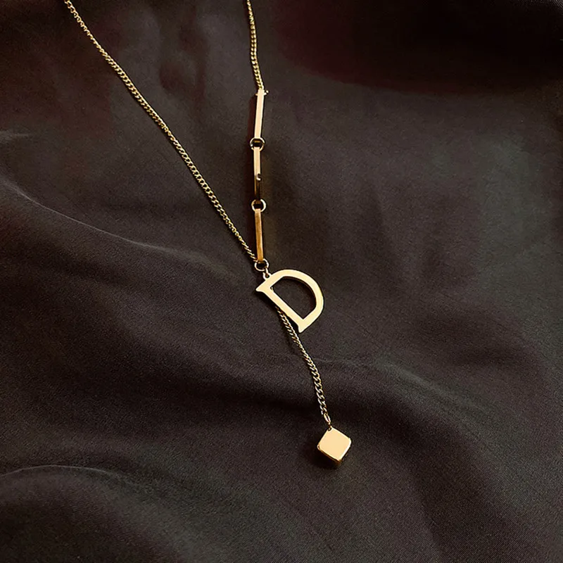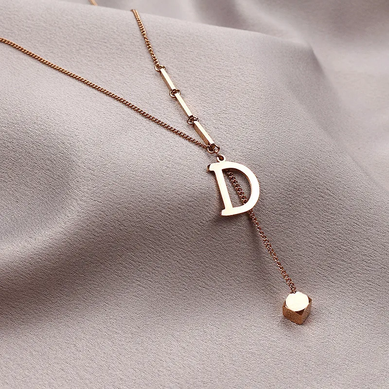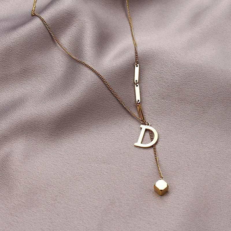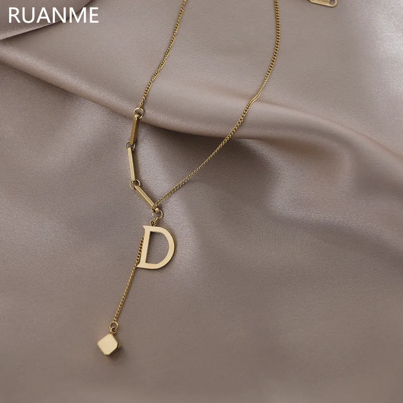 Новинка, классическое ожерелье с подвеской в виде буквы D для женщин, модное ювелирное изделие из титановой стали, Осеннее ожерелье с цепочкой на свитер для девушек