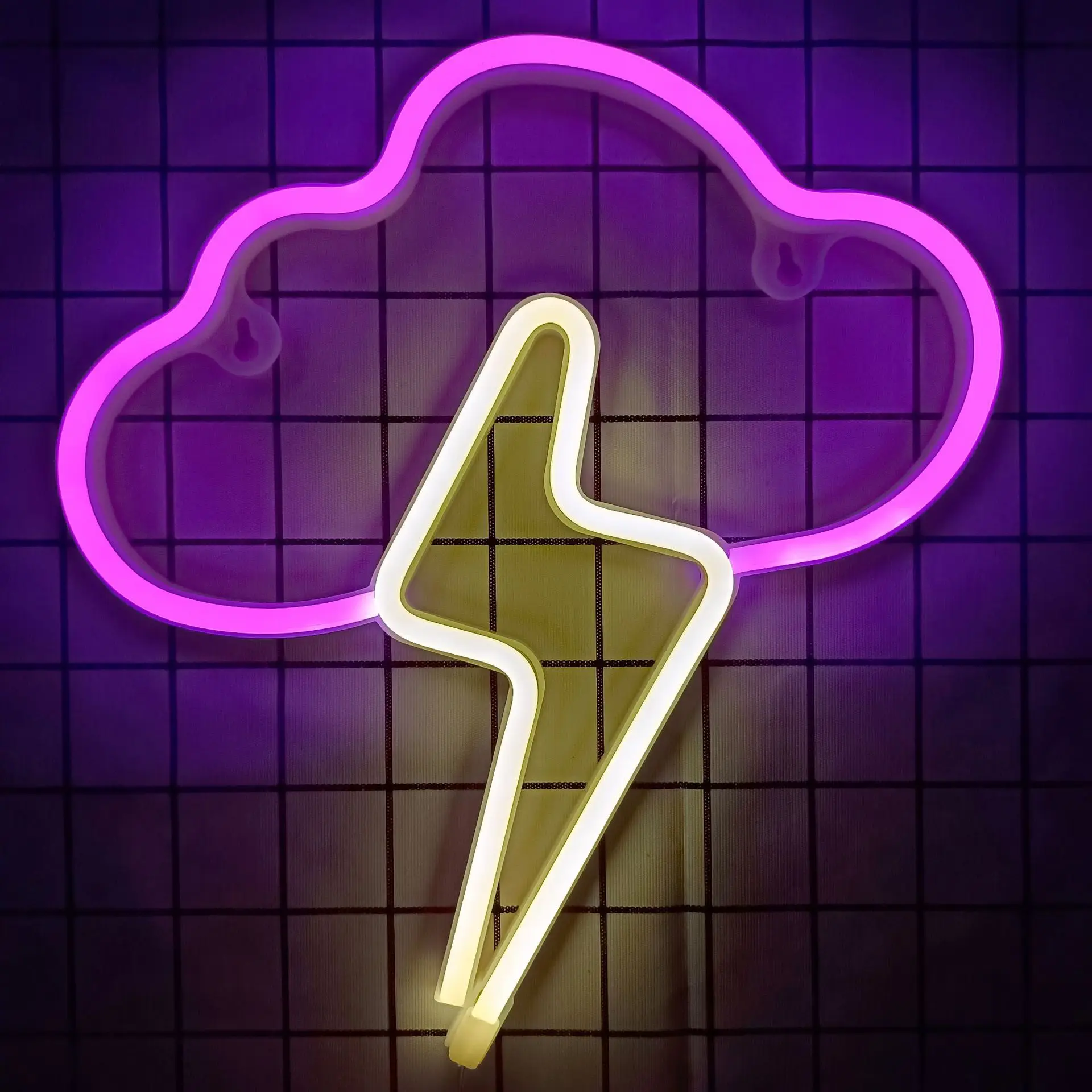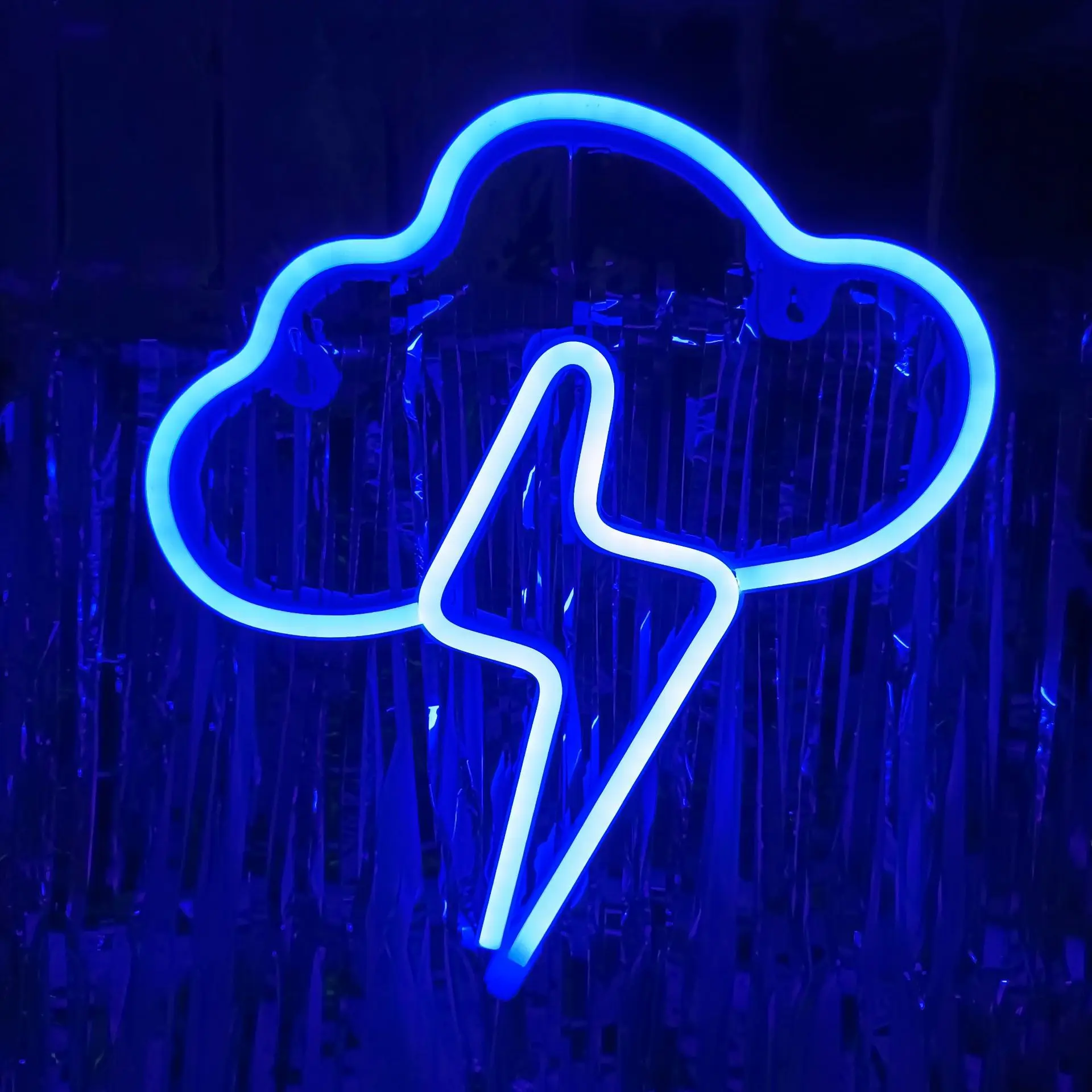 【Upgrade 2 в 1 неоновая вывеска: сочетание двух неоновых огней работает лучше, чтобы показать очарование неонового. Неоновая вывеска голубого облака и неоновая вывеска желтой молнии прекрасно сочетаются, создают теплую и романтическую атмосферу. Кроме того, по сравнению с обычными неоновыми лампами, наши неоновые знаки светятся с обеих сторон, вы можете не только повесить их на стену, но и повесить на потолок и другие места для украшения.
