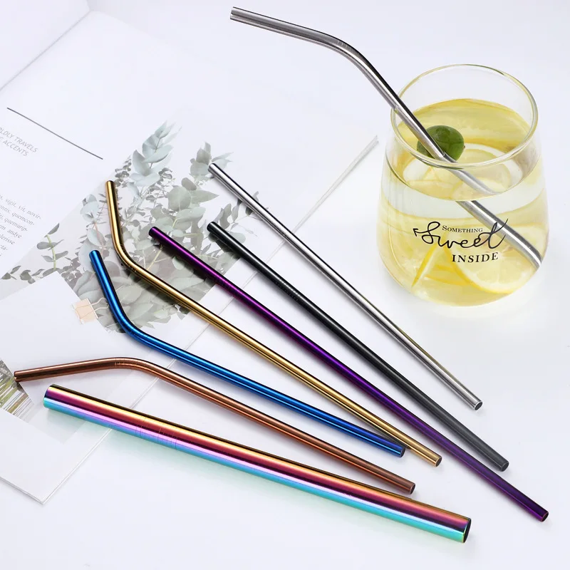 Женская 304 трубочка из нержавеющей стали, прочная изогнутая прямая трубочка с чистящей щеткой, аксессуар для вечеринки