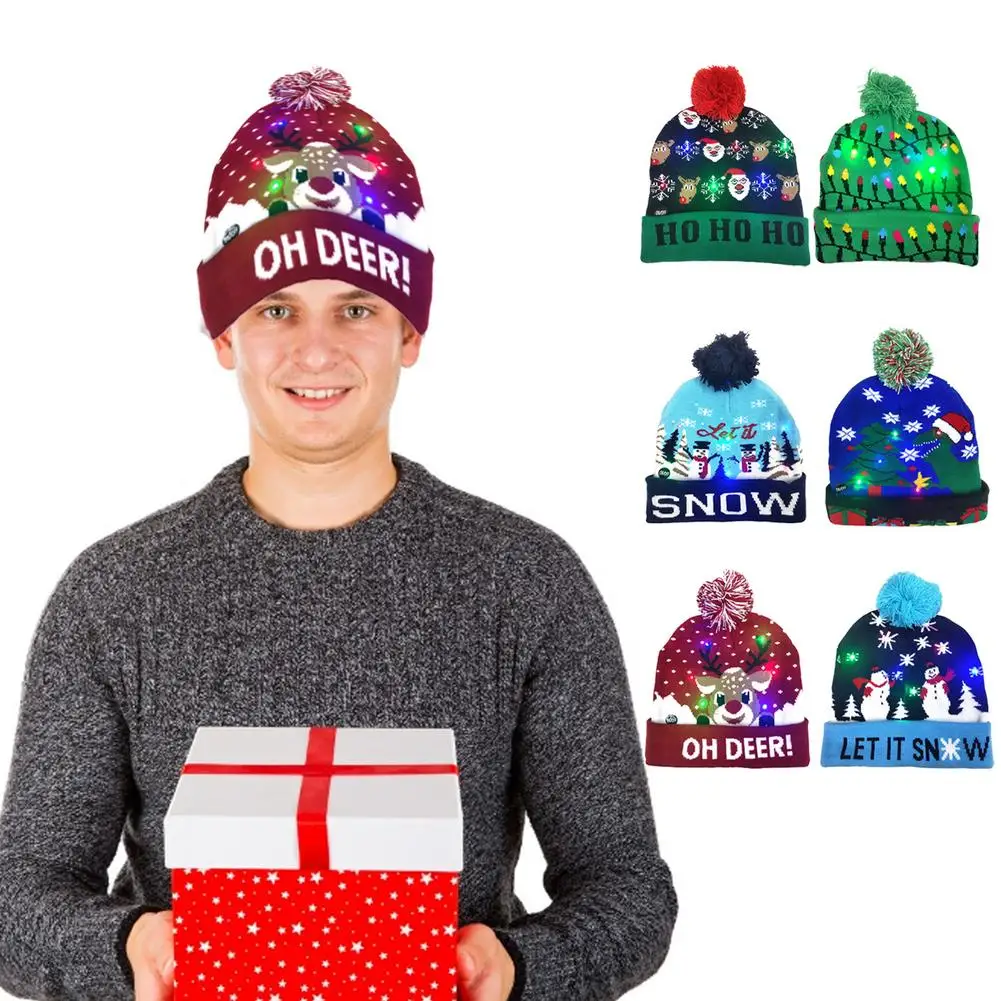 Светодиодная Рождественская шапка, свитер, вязаная шапочка, Рождественская вязаная шапка с подсветкой, рождественский подарок для детей, новогодние украшения 2021 года