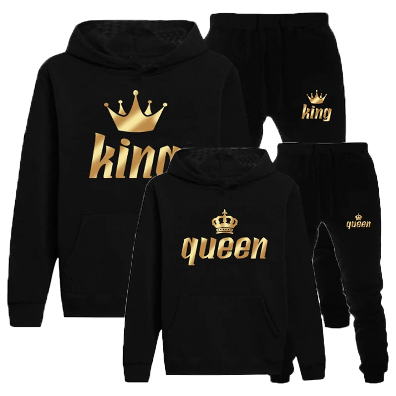 Комплект спортивного костюма для пар KING или QUEEN с принтом, толс...