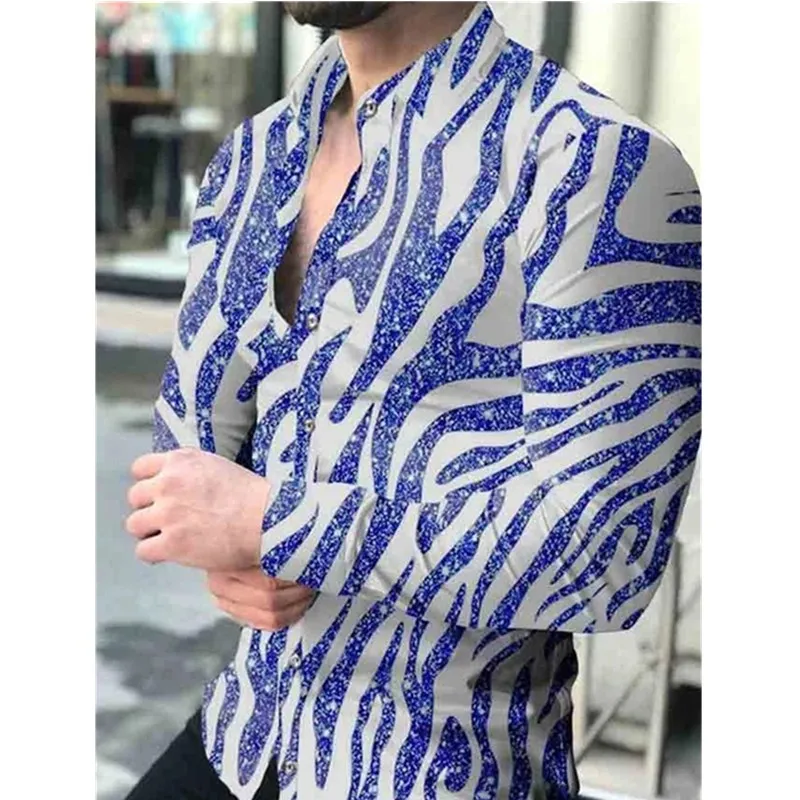 Новинка 2021, мужская повседневная блузка, рубашка с цифровым принт...