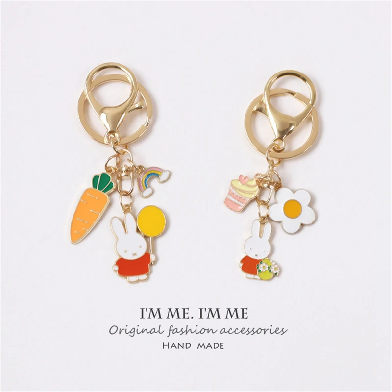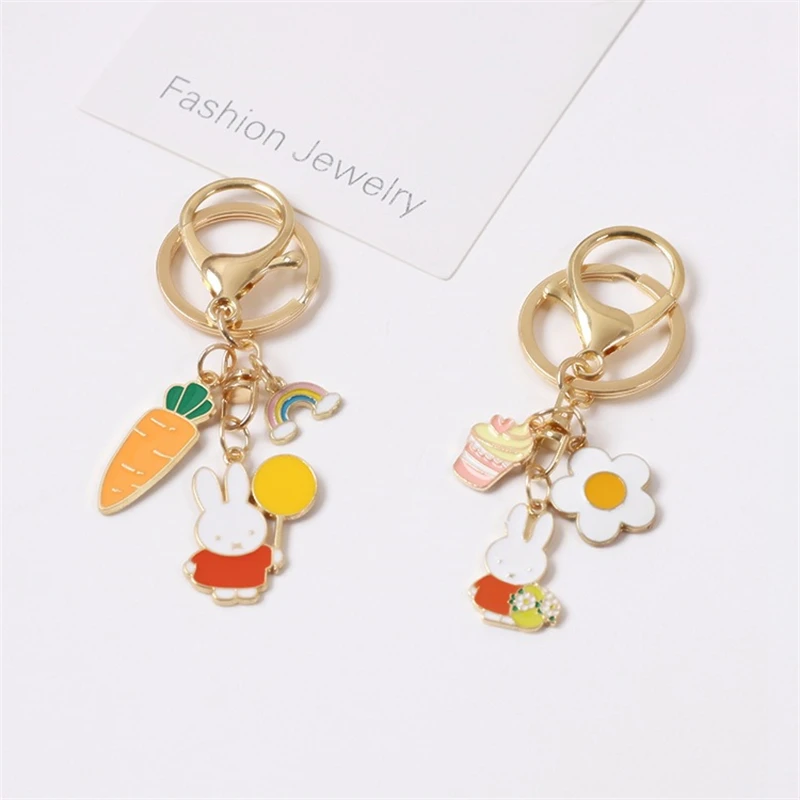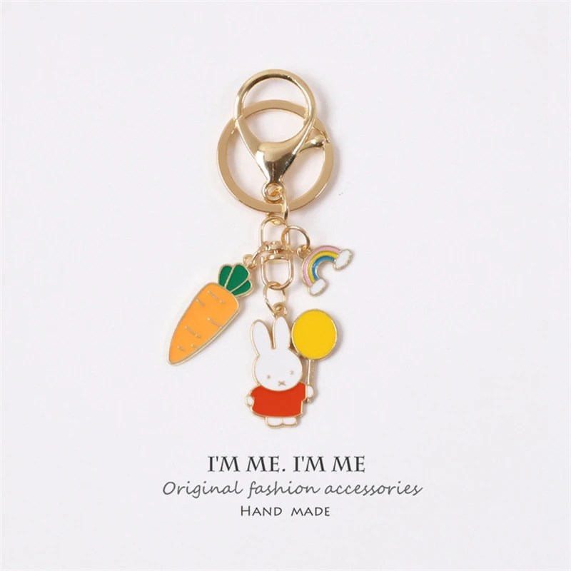 Ins мультяшный кролик редис цветок Радуга милая пара рюкзак сумка ювелирное изделие брелок для автомобиля кулон для мужчин женщин универсальные подарки