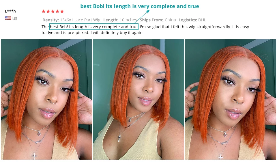 Парик Ginger Bob, парик из человеческих волос на сетке спереди, пар...