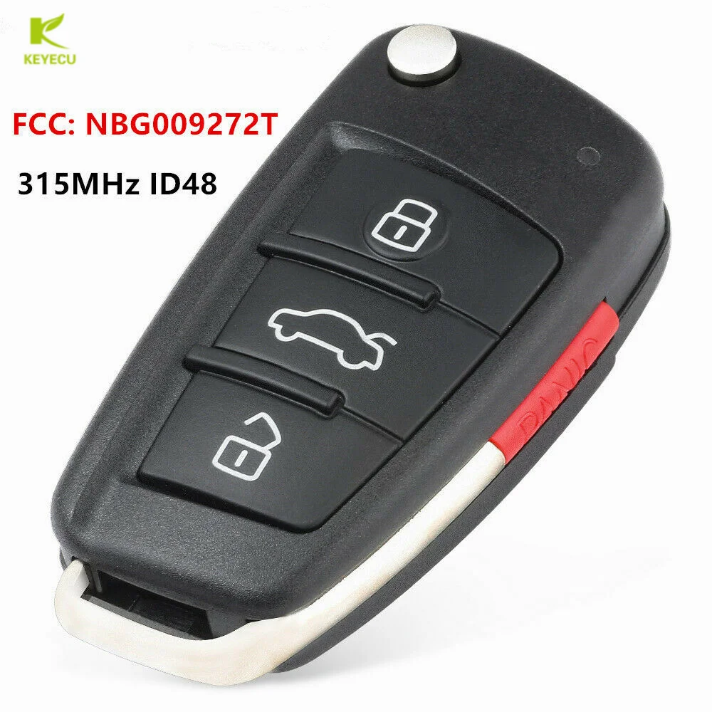 Запасной пульт дистанционного управления KEYECU с 4 кнопками 315 МГц ID48 FCC: NBG009272T для Audi A2 A3 A4 A6 A8 TT Quattro S3 S6 S8 Q7 R8 S5 RS4