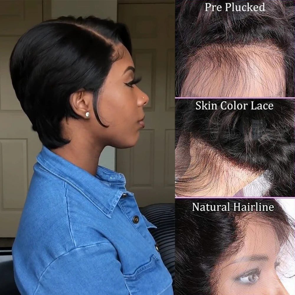 Короткие прямые парики из человеческих волос с вырезами фея, парики T-Part, прозрачный парик на сетке, предварительно выщипанные прямые парики 13x4 на сетке