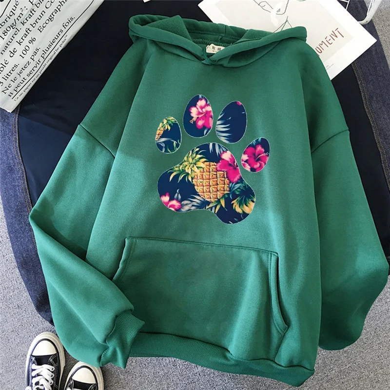 Свитшот женский с длинным рукавом, Повседневный пуловер с капюшоном, с рисунком собачьей лапы, одежда на осень и зиму