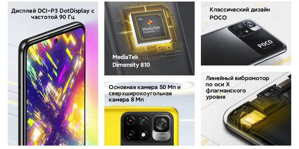 Смартфон глобальная версия POCO M4 Pro, 4 Гб 64 Гб6 ГБ 128 ГБ, MTK Dimensity 810 дюйма, 33 Вт Pro, 50 МП, 6,6 мАч