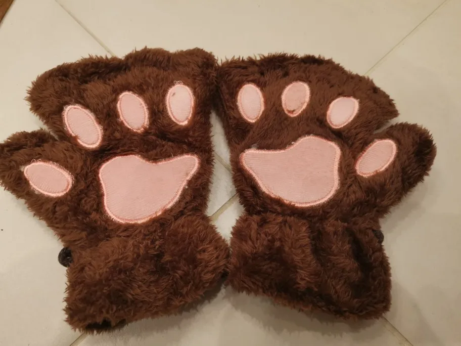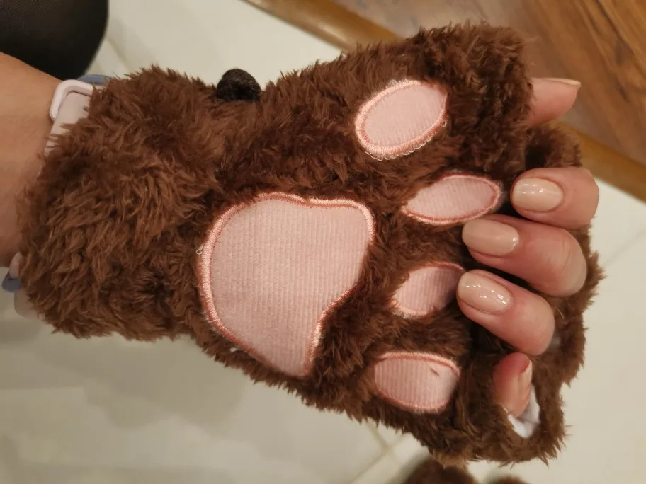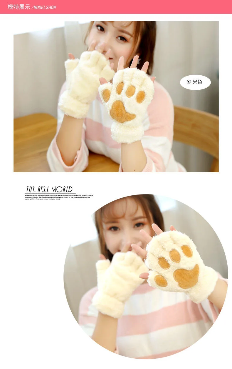 Женские плюшевые перчатки с кошачьими лапами и медведем, зимние рук...