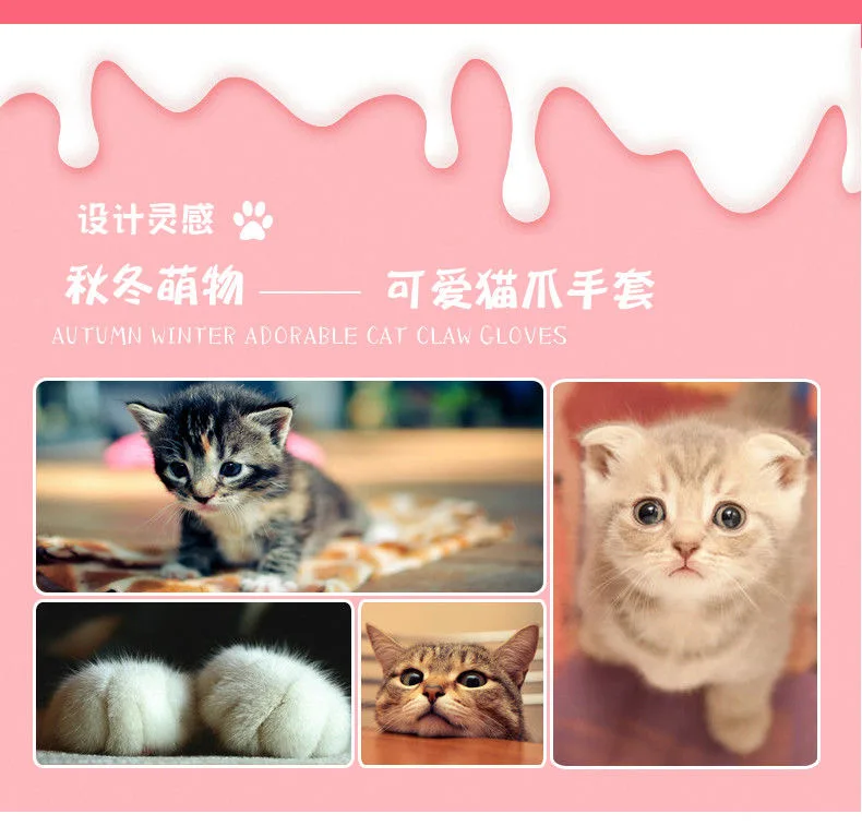 Милые теплые перчатки ashion для женщин, девочек, кошек, котят, лап...