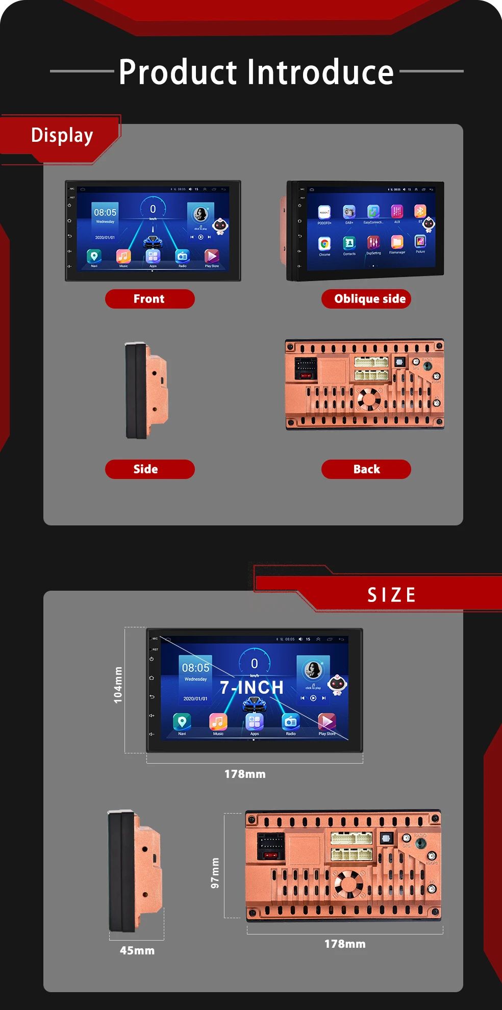 ОсобенностиСистема: AndroidНабор микросхем: 8227L-DEMOРазмер экрана: 7''Память:1 Гб (RAM) + 16 Гб (ROM)2 Гб (RAM) + 16 Гб (ROM)2 Гб (RAM) + 32 Гб (ROM)4 Гб (RAM) + 64 ГБ (ROM)8 ГБ (RAM) + 128 ГБ (ROM)Разрешение экрана: 1024*600Зеркальная ссылка: Android/IOSРадиочип: NXP6851Выходная мощность: 4*45 ВтРабочая температура:-40 ℃-80 ℃Функция управления рулем: ПоддержкаВерсия Bluetooth: 4,0Чип усилителя мощности: AC7315Радио диапазон: FMВидеовыход: ПоддержкаКарты: Встроенные автономные картыWIFI: поддержкаUSB: двойной USB интерфейсИзменение логотипа автомобиля: ПоддержкаФормат аудио: APE/FLAC/WAV/MP3/WMA и т. Д.Формат видео: MKV/RMVB/AVI/MP4/MDV и т. Д.Формат изображения: PNG/JPEG/JPG/GIF/WBMP/BNP и т. Д.Заводское ключевое слово: 8888Язык: китайский/английский/французский/итальянский/Корейский/японский/арабский/испанский/португальский/русский/Турецкий/Вьетнамский/Иврит/Польский/немецкийТовар входит в комплект1 х Автомобильный MP5 плеер1 x Антенна GPS1 х электропроводка2 usb-адаптера1 х RCA входной и выходной провод1 x кулачковый провод2 x монтажный кронштейн1 задняя камера