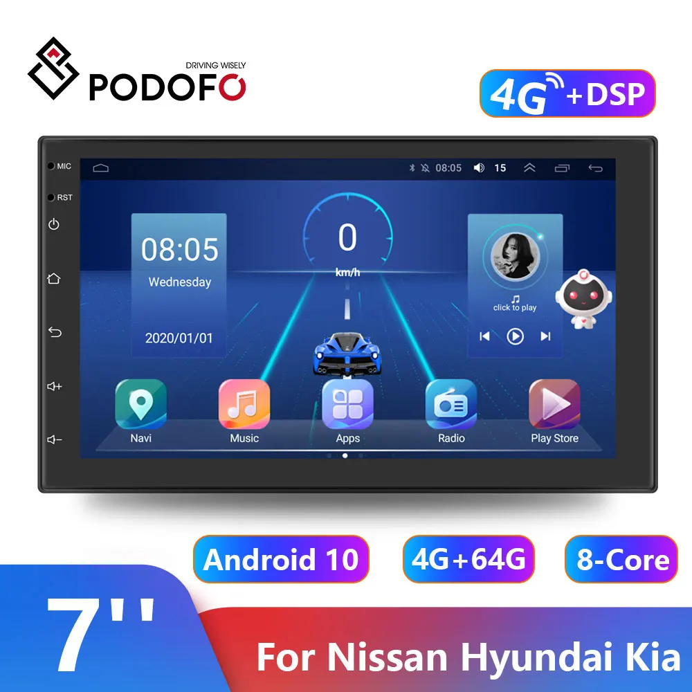 Автомагнитола Podofo, мультимедийная стерео-система на Android 10, 4 Гб ОЗУ, 8 ядер, с GPS, видеоплеером, для Nissan, Hyundai, Kia, toyota, LADA, Ford, типоразмер 2DIN