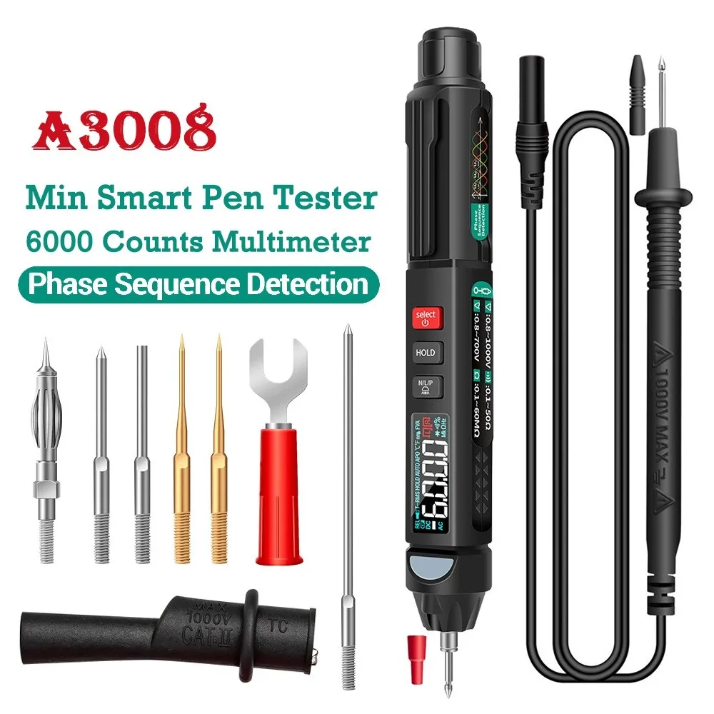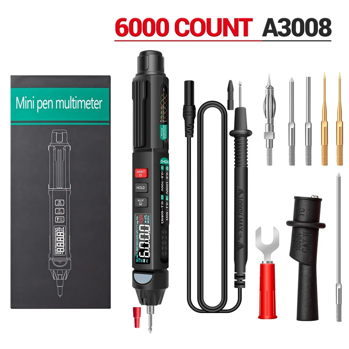 Мультиметр, профессиональный цифровой мультиметр, тестер A3007A3008 Auto сенсорная ручка Tester, 6000 отсчетов, мультитестер напряжения