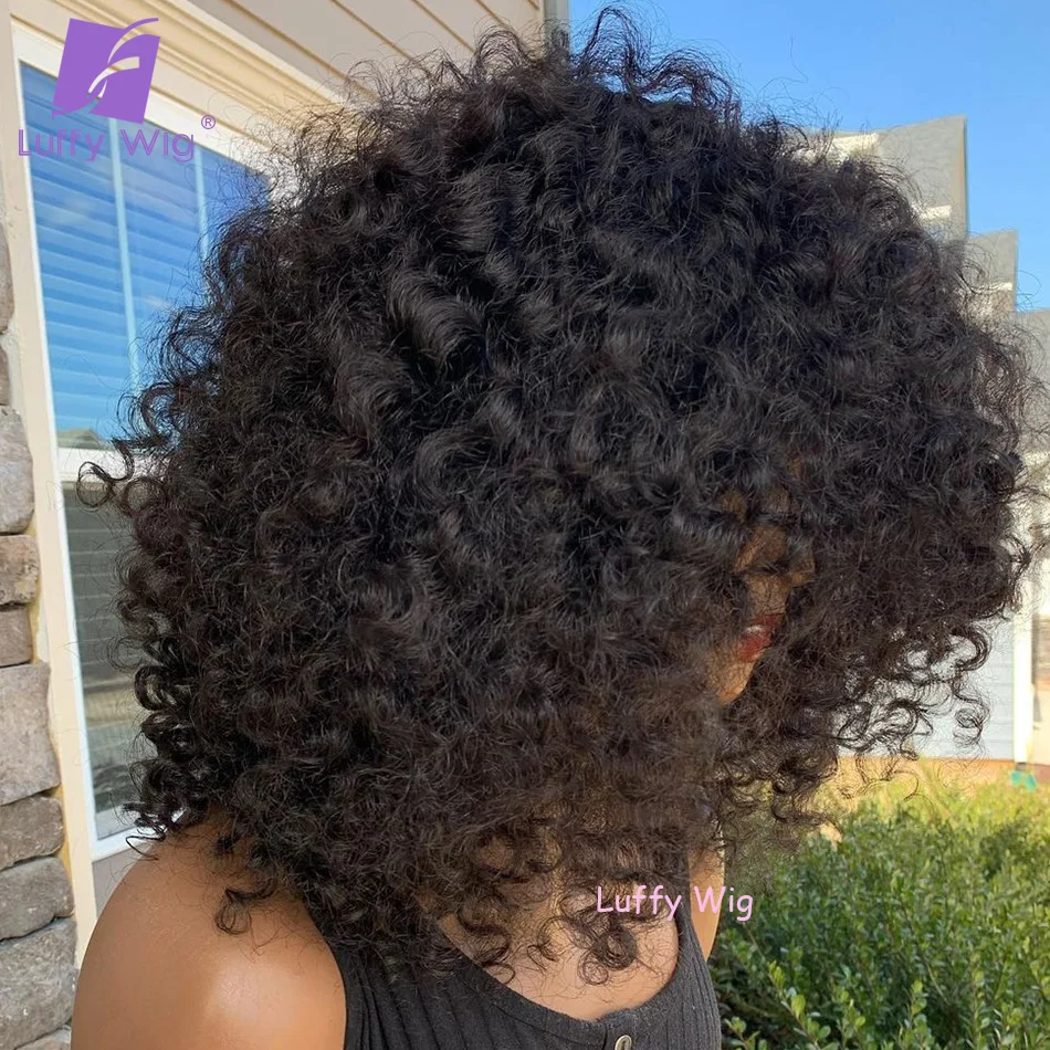 Надувные вьющиеся человеческие волосы, парики с челкой, короткие бразильские волосы Remy, машинная работа, Боб, парик без клея, 200 плотность для черных женщин, Луффи
