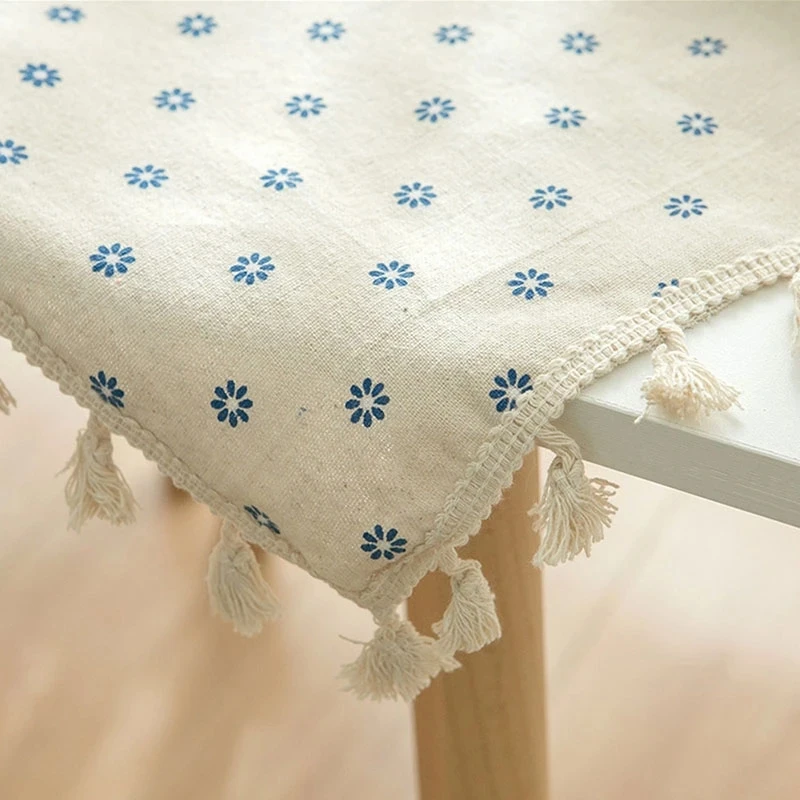Скатерть для стола из хлопка и льна, прямоугольная скатерть с кисточками