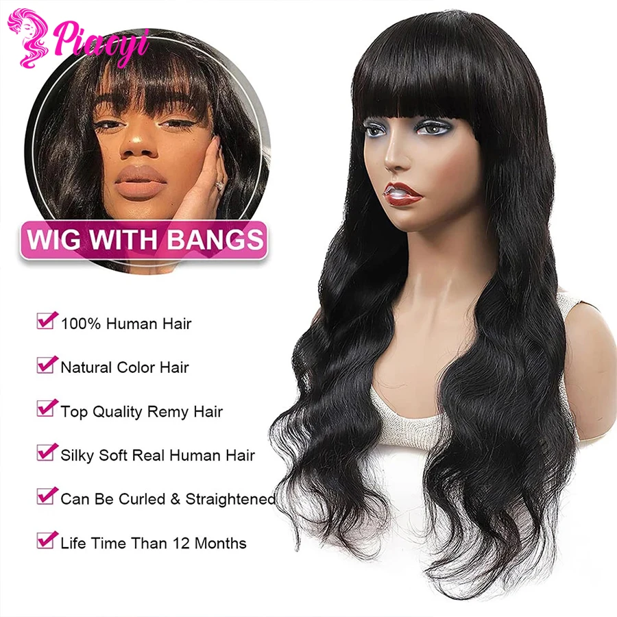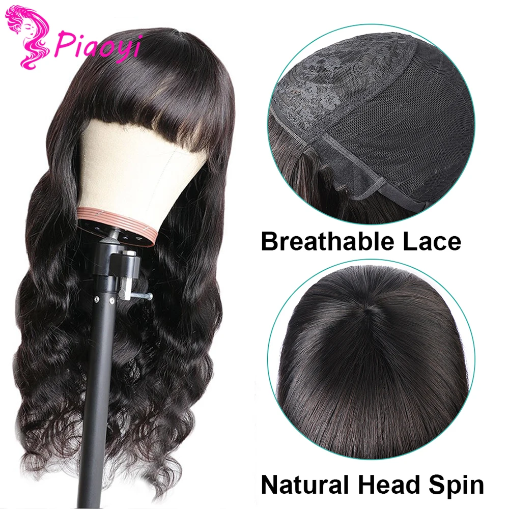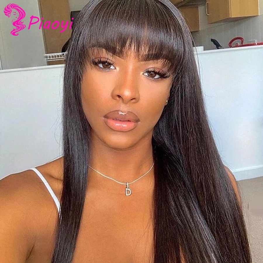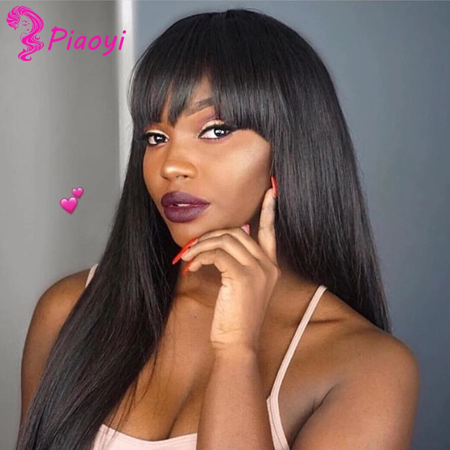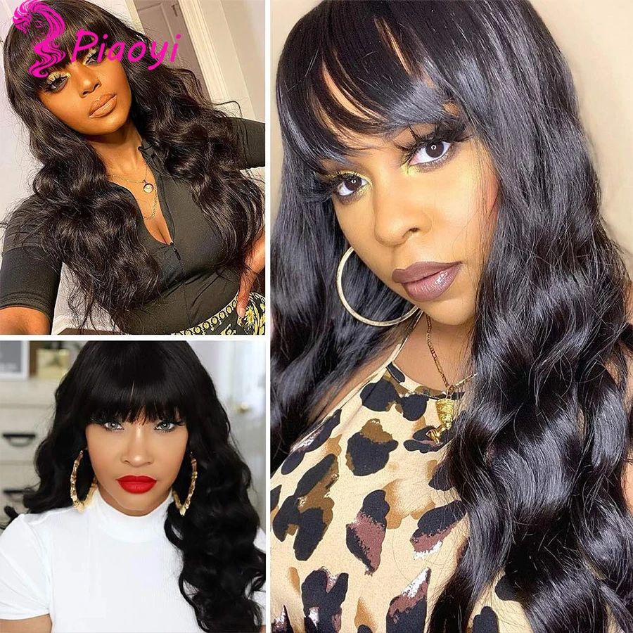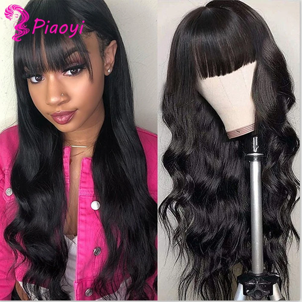 Индийские волнистые человеческие волосы парики с челкой Remy полностью машинное изготовление человеческие волосы парики для черных женщин Piaoyi Remy волосы