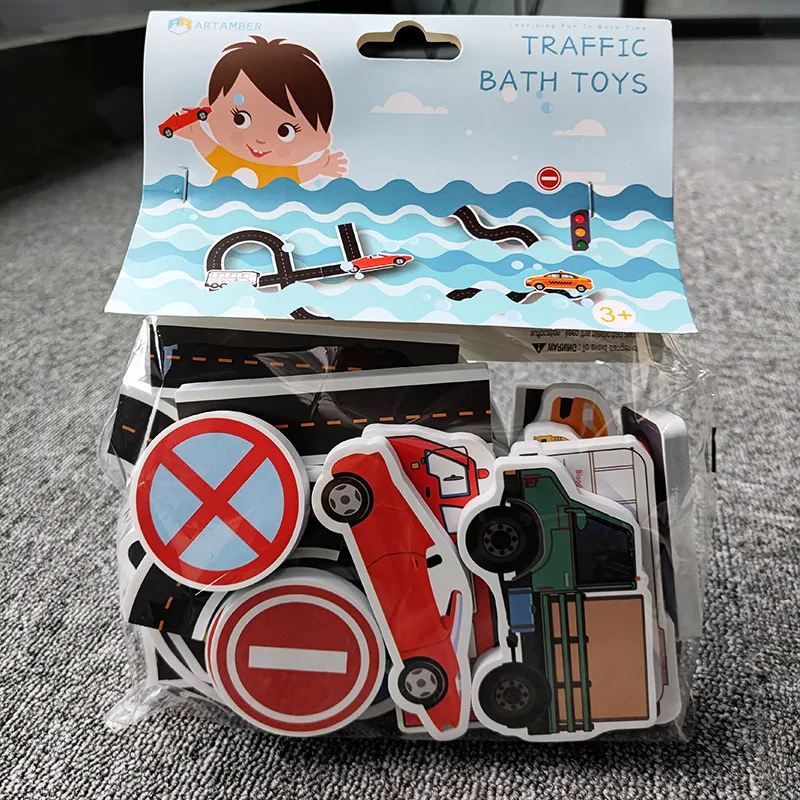 Create flexible Road Track Car Stick Игрушка для ванной комнаты раннее образование DIY дорожные знаки пенные наклейки для ванной игрушка для детей