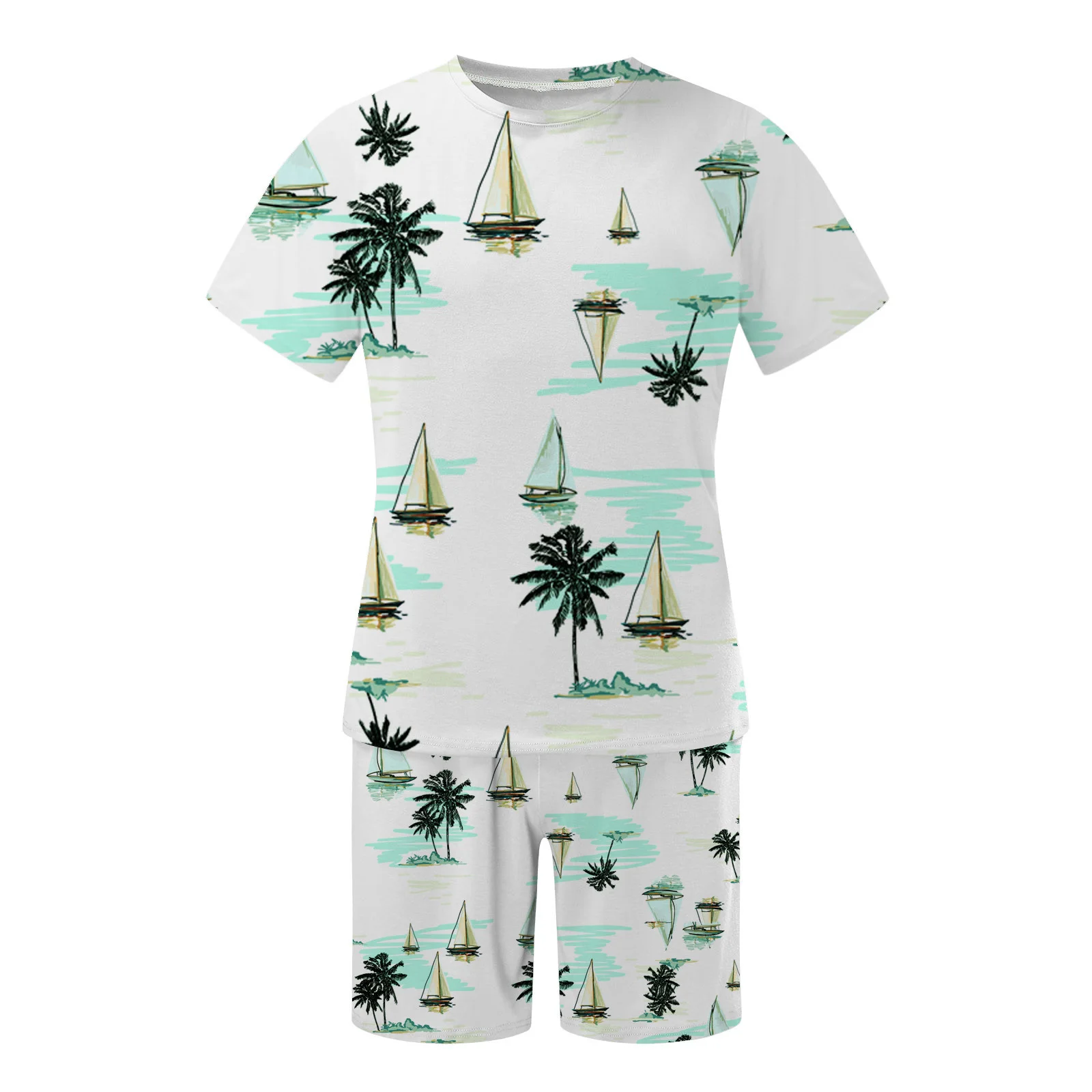 Мужской повседневный спортивный костюм, комплект из 2 предметов, футболка с коротким рукавом и шорты с тропическим принтом, лето 2021