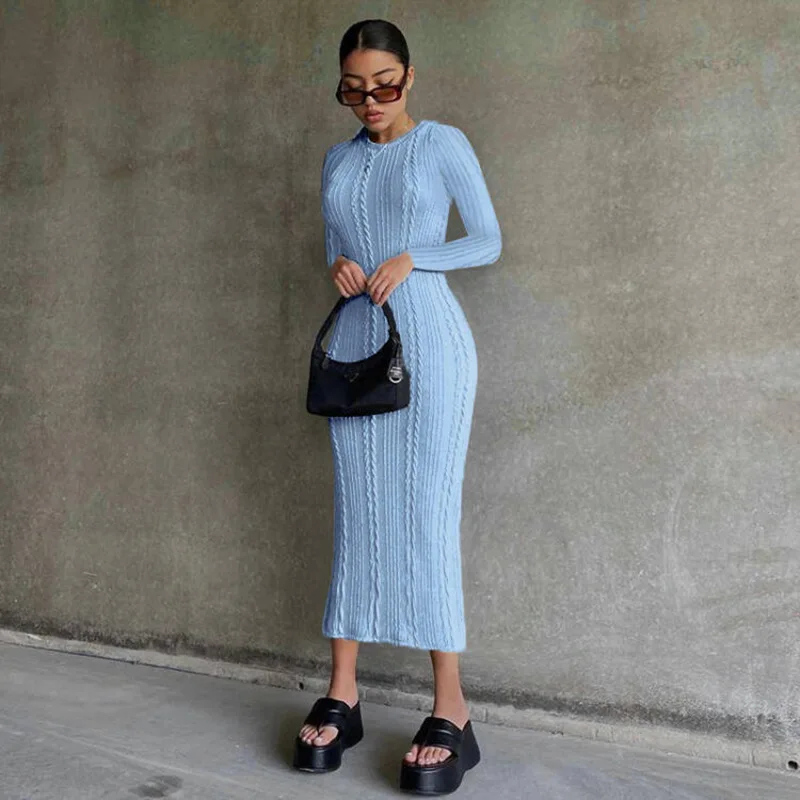 Женское трикотажное платье HAASKEW с длинным рукавом до щиколотки, осенне-зимнее новое облегающее базовое платье с круглым вырезом, женское сексуальное модное платье