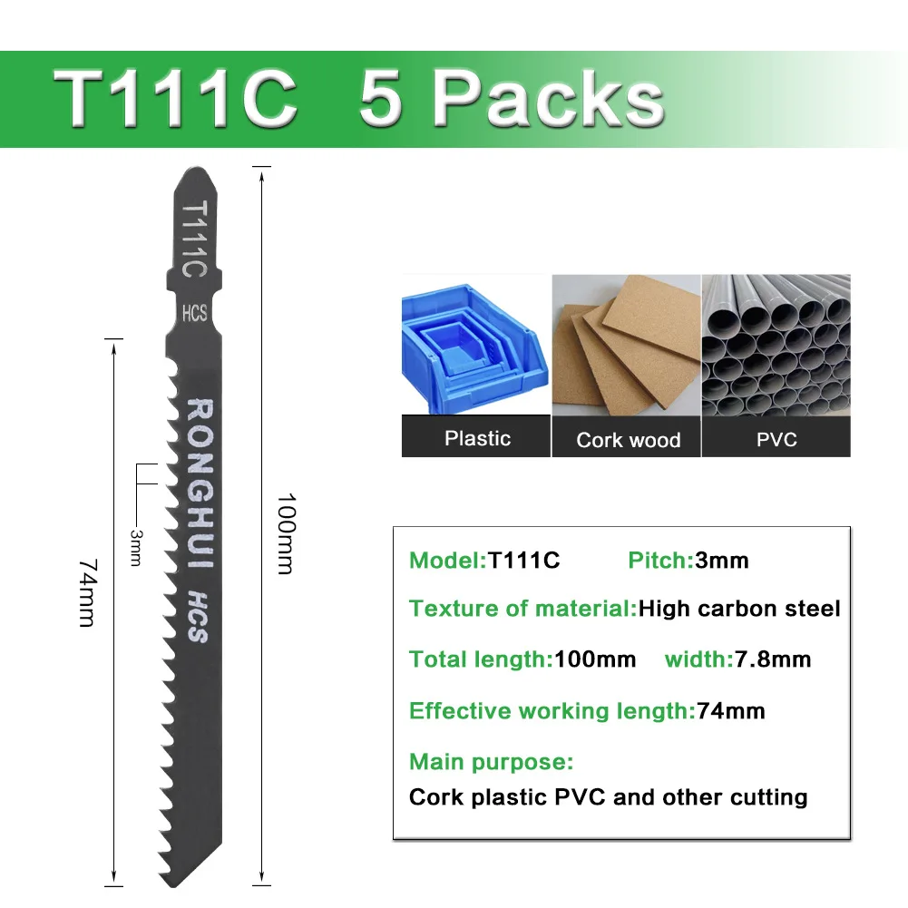 5 шт./компл. лопасти для деревообработки/пластиковые ПВХ T144D / T244D / T118A / T111C Особенности:* Джиг пилы, отлично подходит для быстрой резки* Простота в использовании. Длительный срок службы.* Отлично подходит для прямой резки и быстрой резки* Острый и прочный в использовании* Очистка для хвойных пород, ДСП, фанеры с деревянным сердечником, волоконные доски (3-30 мм), ламинированные доски, очистка поверхности вниз режущих лезвий. Спецификация:Название: лезвие для джигаМатериал: Высокоуглеродистая стальРазмер: как показано на рисункеЦвет: T118A T144D T244D T111CПрименение: используется для резки пластин из нержавеющей стали, железных пластин, железных листов, ПВХ, дерева, алюминиево-пластиковых панелей, костей и т. д. Посылка включает в себя:5 лезвий для лобзиков Примечание:Пожалуйста, учитывайте погрешность в 1-3 мм из-за ручного измерения. Пожалуйста, убедитесь, что вы не возражаете, прежде чем сделать ставкуИз-за разницы между различными мониторами изображение может не отражать фактический цвет изделия. Спасибо!