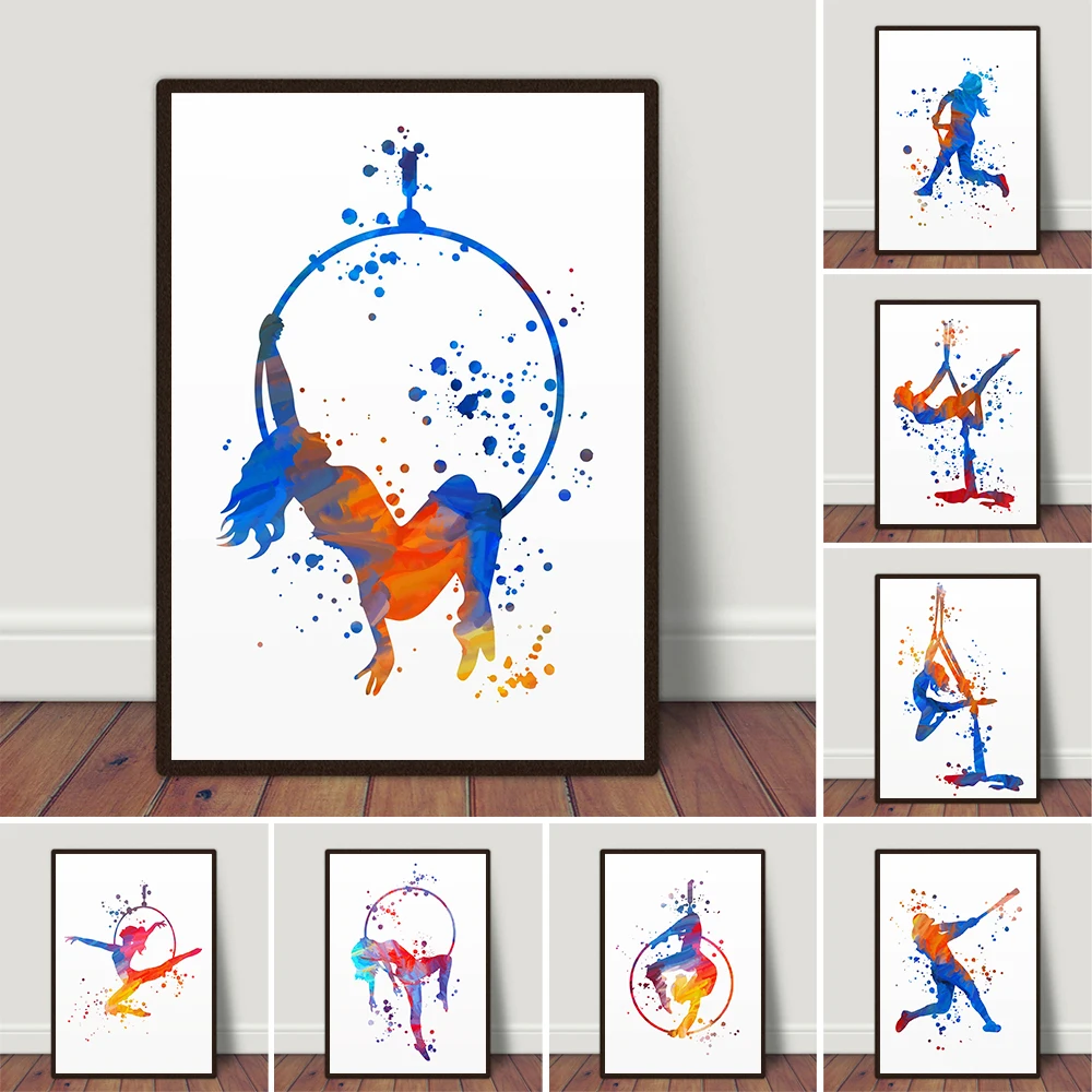 Цирковый постер воздушной танцы леди Lyra обруч Йога на холсте картины для спальни домашний декор