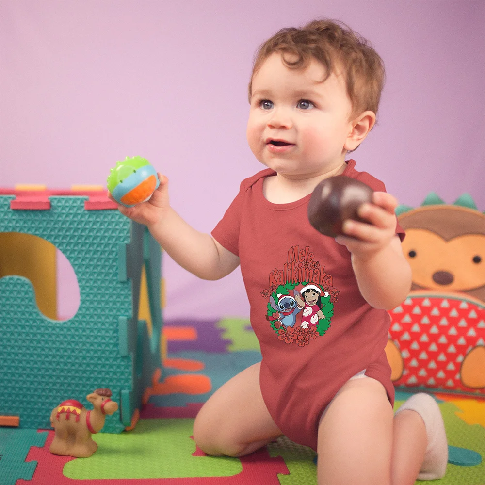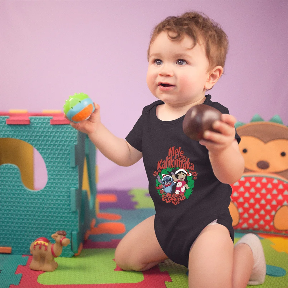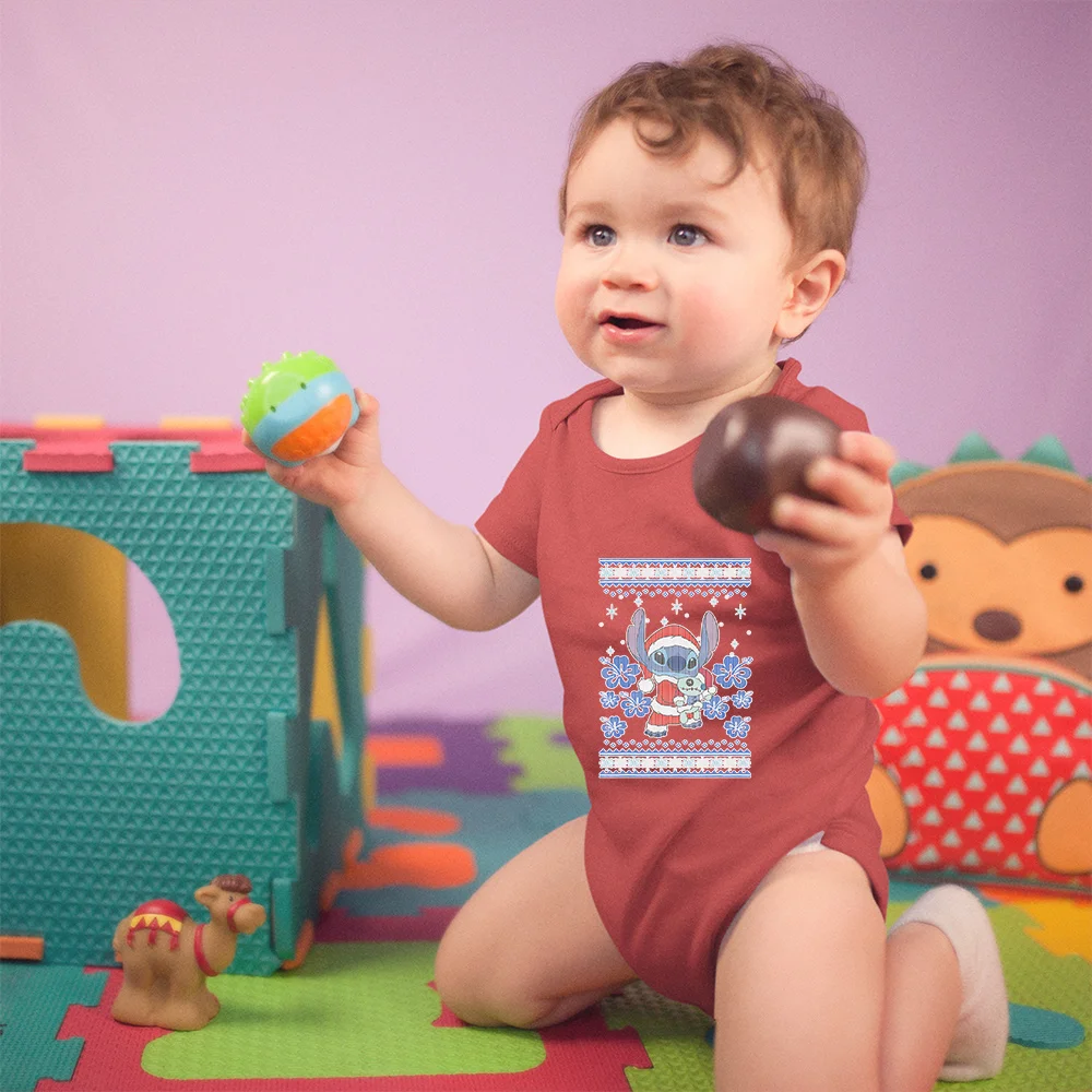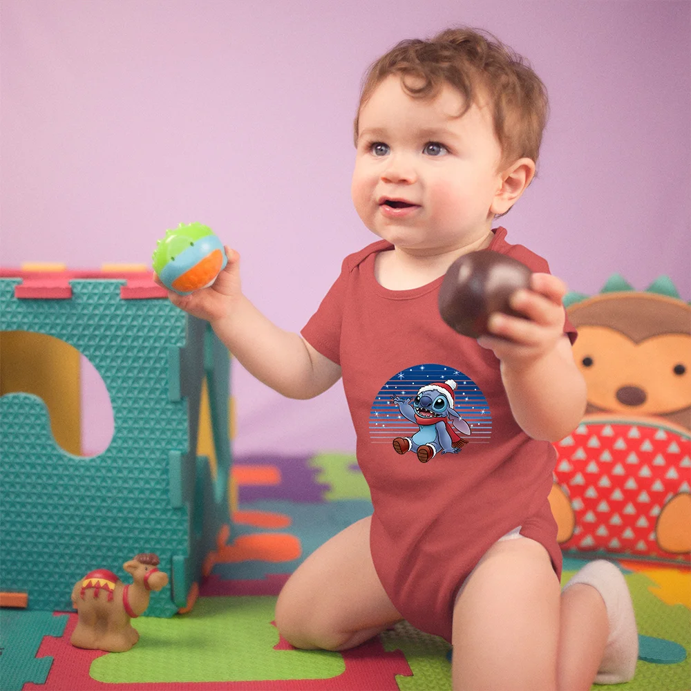 Боди для младенцев аниме Лило и Ститч графика с короткими рукавами Счастливого Рождества комбинезон для мальчиков кавайная Одежда для девочек цветной комбинезон