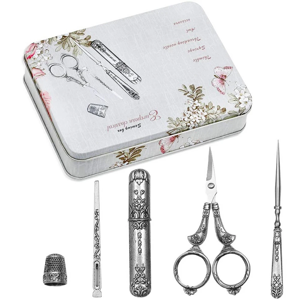 5 шт.компл. Винтаж Ретро ножничный швейный набор + игла для хранени...