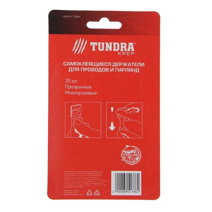 Держатель самоклеящийся для проводов и гирлянд TUNDRA, многоразовые, 20 шт.
