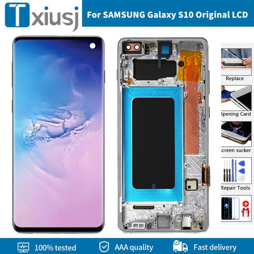 6,1 ''оригинальный AMOLED LCD для SAMSUNG Galaxy S10 ЖК G973F/DS G973U G973 SM-G973 ЖК дисплей с сенсорным экраном Digitizer Замена