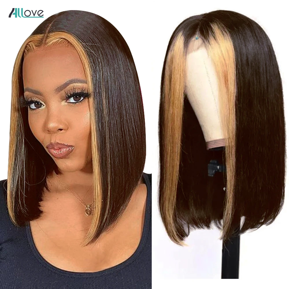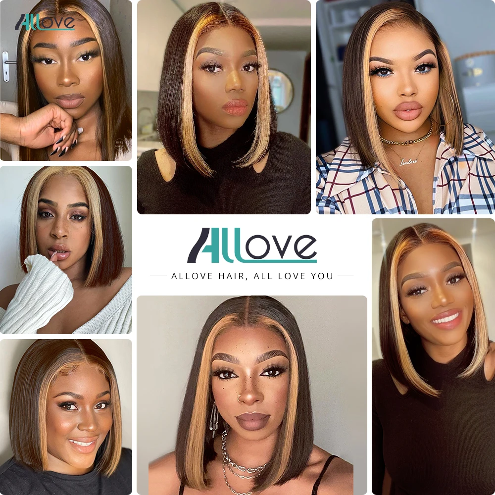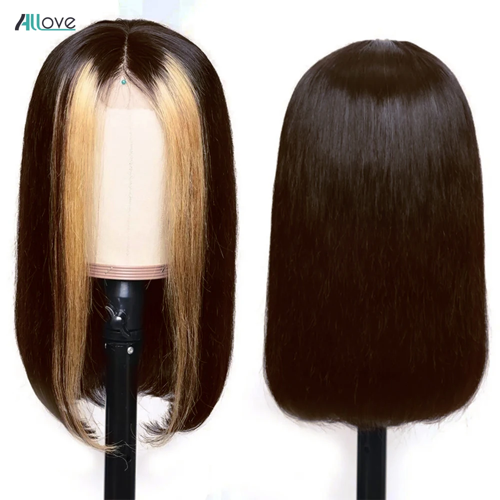 Парик Allove 1B 27 из хайлайтера Боб, прямые короткие волосы боб, парик без клея, 13x4, бразильские цветные человеческие волосы Омбре, парики для женщин
