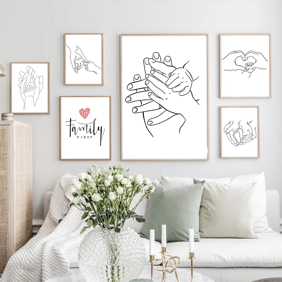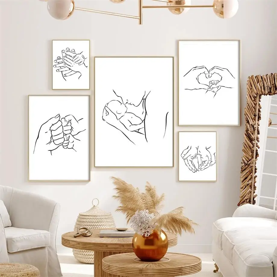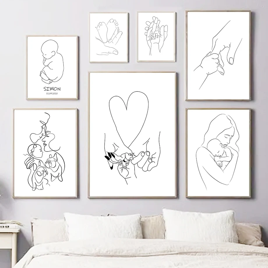 Абстрактная линия семья ребенок рука нога сердце настенное Искусств...
