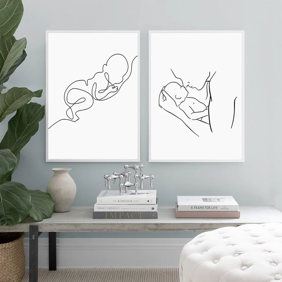 Абстрактные линии рука мама ребенок Черно-Белая настенная Картина н...