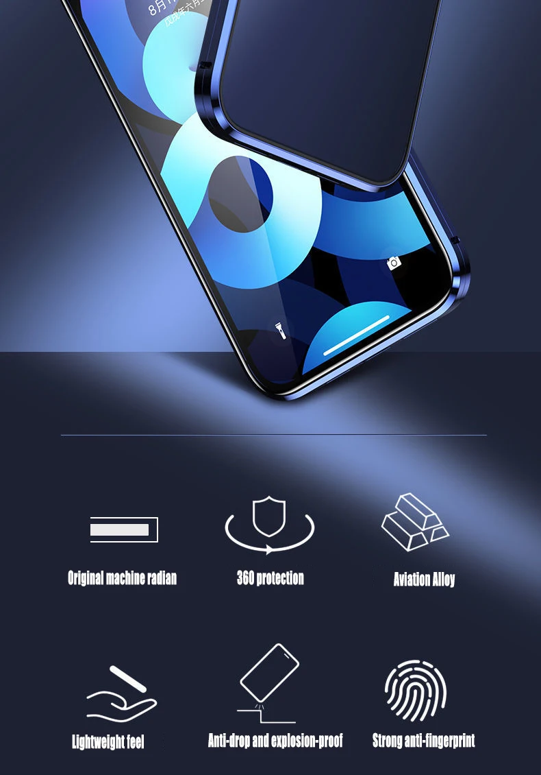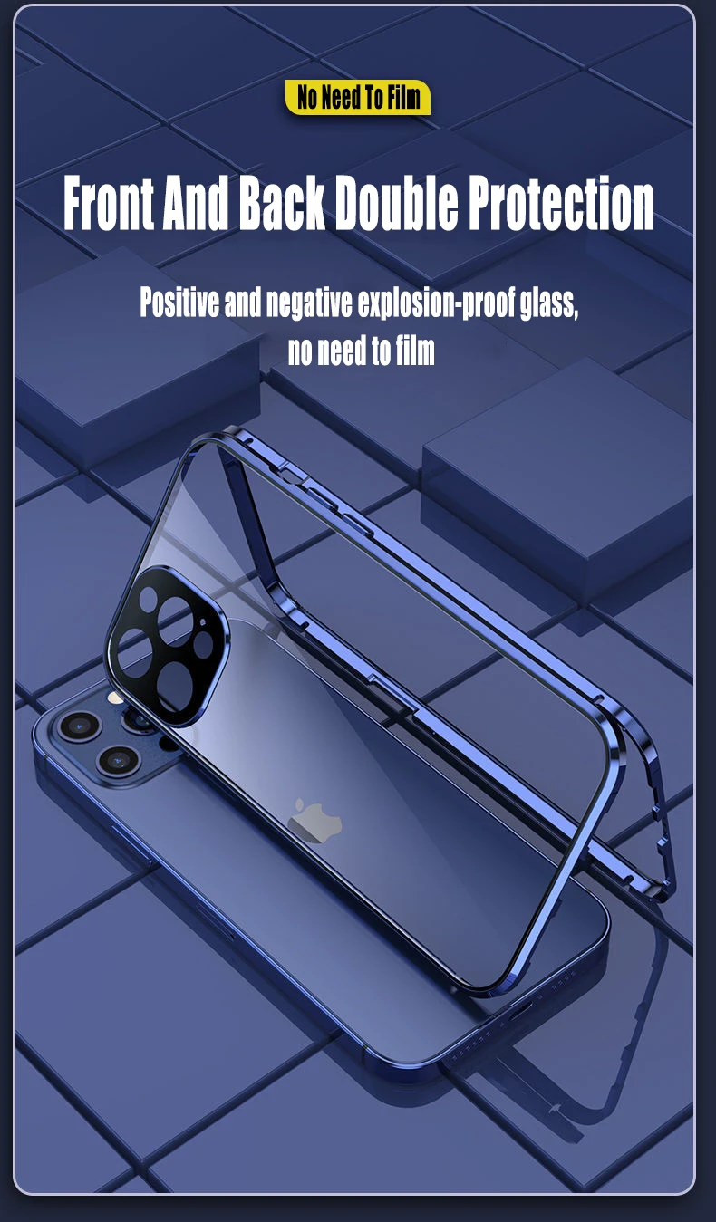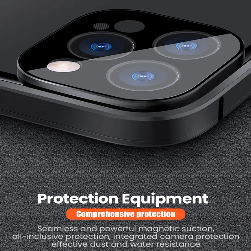 Металлический чехол с магнитной адсорбцией для iPhone 11 12 13 Pro XS Max 12 13 Mini, двухсторонняя стеклянная Защитная пленка для объектива камеры, 360