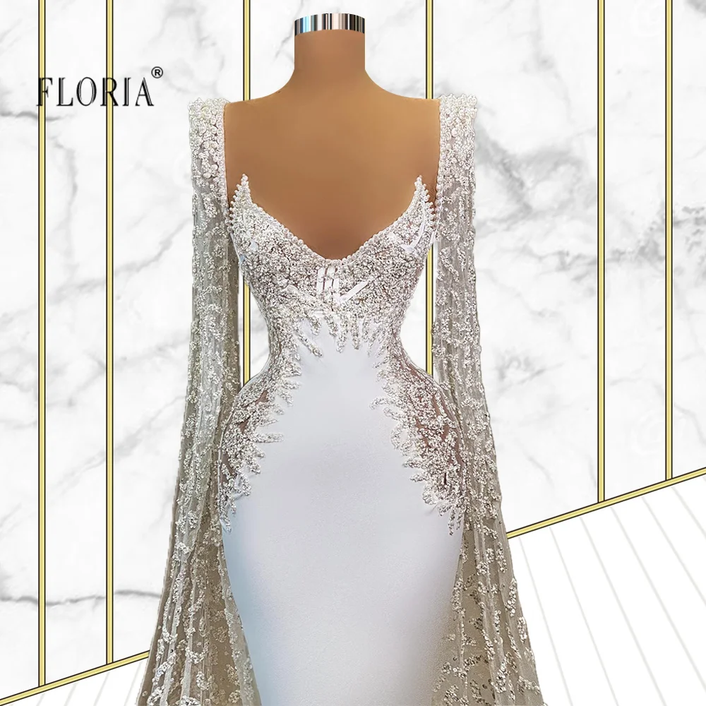 Floria Свадебная вечеринка платье жемчуг Длинные рукава Свадебное п...