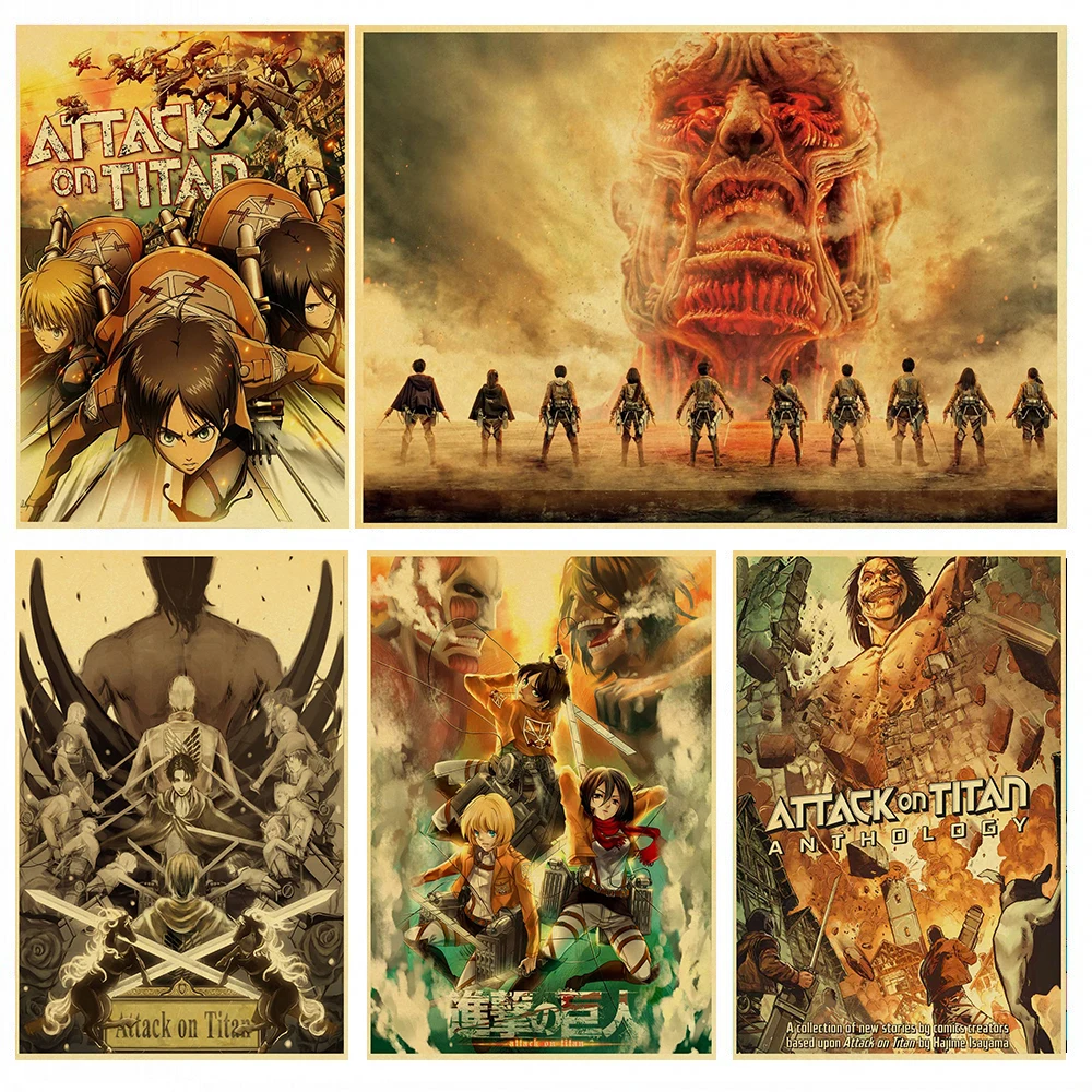 Винтажный постер из крафт-бумаги Атака Титанов, коллекция веера атл...