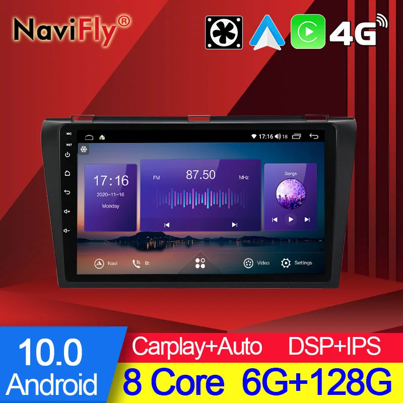 NaviFly 7862C 6G 128G Android 10 Автомобильный мультимедийный видео плеер для Mazda3 BK 2003 - 2009 встроенный Carplay Auto DSP GPS 1280*720