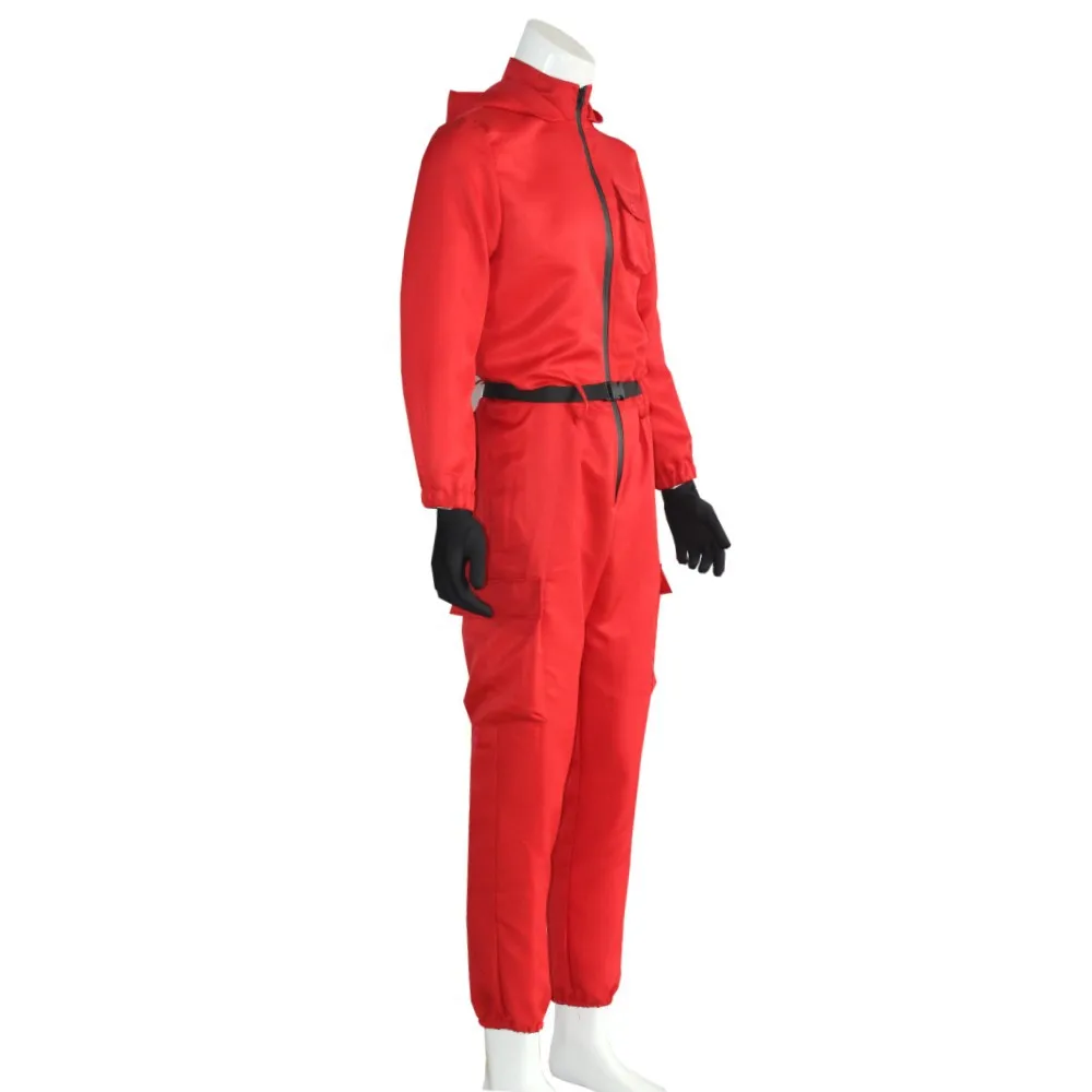 Костюм из игры кальмар, красный комбинезон, маска, пояс, перчатки, ...