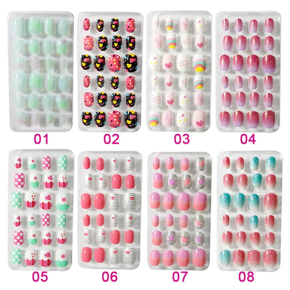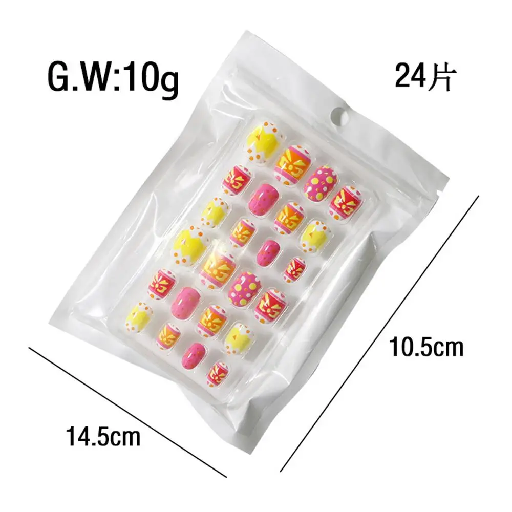 Детские накладные ногти с полным покрытием, самоклеящиеся накладные ногти для маникюра, конфетные цвета, накладные ногти для детей, 24 шт.кор.