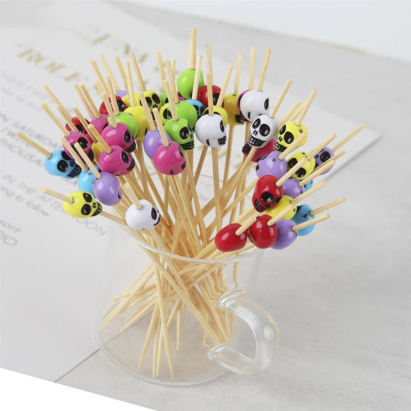 Декоративные Зубочистки бамбуковые Фруктовые палочки одноразовые коктейльные палочки фруктовые шашлыки для детей Коктейльные украшения свадебные Ланч буфет вечерние принадлежности аксессуары на Хэллоуин Рождество