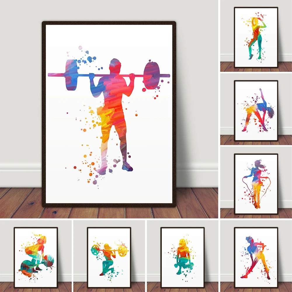 Плакат Deadlifter для упражнений для девочек, акварельный холст, картины, спортивный силуэт, настенное искусство для спортзала, домашний декор