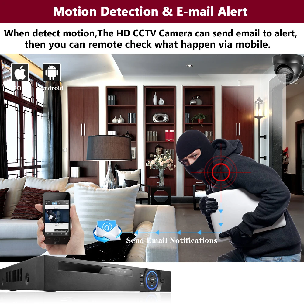 Эта система предназначена для отправки оповещения по электронной почте при обнаружении любого движения и позволяет записывать только при обнаружении движения.